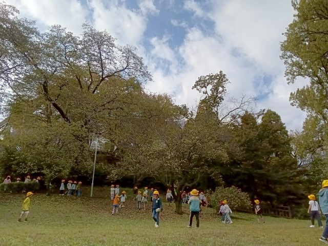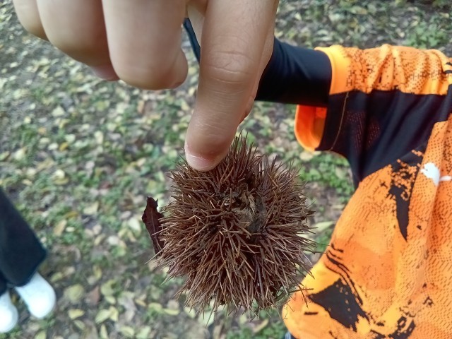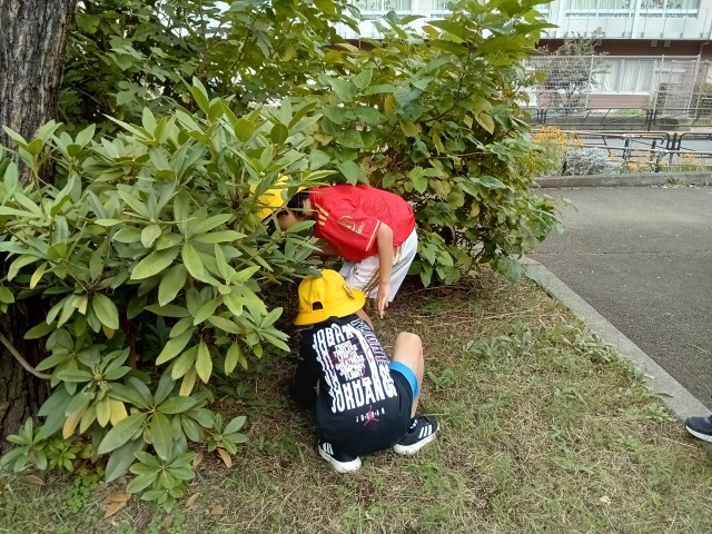 1年生は、生活科の学習で六本木公園に秋探しに出かけました。落ち葉やいがぐりなど、秋を見つけて喜んでいました。