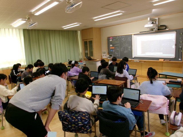 4年生社会科の授業を参観しました。問題解決的な学習を、児童の主体性を生かしながらすすめていました。子供自身がもった問題について、自らの方法で計画的に調べ、まとめることができていました。自分自身でもった疑問を自分の力で解決できたときの子供たちの表情が印象的でした。