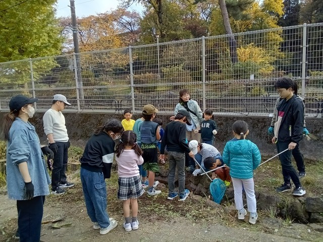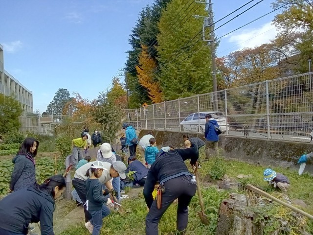 11月15日土曜日に、第2回ビオトープ学習会を行いました。公園課の皆さんのご協力のもと、約30名の子供たち、保護者・地域の方が参加しました。今回はビオトープの環境整備を中心に、草取り作業を行いました。外来種と、在来種の中でもふえる力がとても強い種類の草を取り除きました。参加いただいた皆さんのおかげで、すっきりとビオトープが整備されました。ありがとうございました。