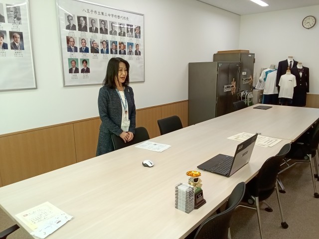 【Ⅱ・Ⅲ期】朝会 公開日 2025/11/17 更新日 2025/11/17 今日のできごと Ⅱ・Ⅲ期朝会をオンラインで行いました。校長先生からは11月20日(木)の開校6周年記念植樹セレモニーについてのお話と、学校では認知能力と非認知能力を学んでいることについてお話がありました。その後、俳句大賞に入賞した生徒、部活動で活躍した生徒の表彰を行いました。最後に、きこえとことばの担任から、15日(土)から始まったデフリンピックについての紹介がありました。