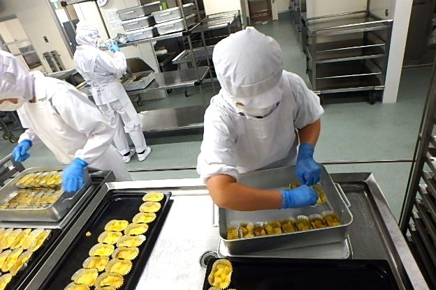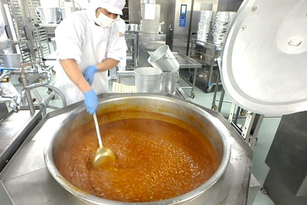 給食のハヤシライスは、「フォン・ド・ボー」というすね肉や骨からとるだしを入れることができないので、玉ねぎをあめ色になるまで炒めたり、にんじんをすりおろして入れたり、ルーをできるだけ濃くしたりと工夫して作りました。