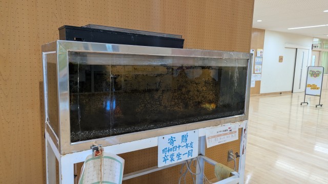 60年以上もの間、たくさんの子供たちを見守り続けてくれた水槽ですが、耐久性の面から交換となります。長く使い続けてこれたのも、これまで管理してくださった多くの卒業生や教職員のおかげです。ありがとうございました。