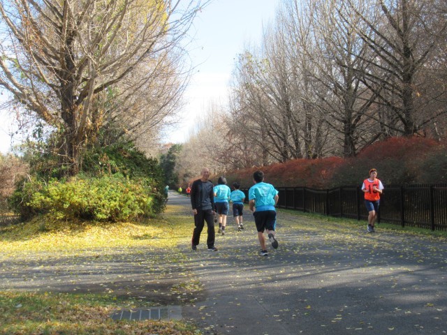 会場は本番と同じ国営昭和記念公園。まずは一度、コースを歩き、そのあと準備体操とアップをして、本番と同じコースと距離の試走に臨みました。