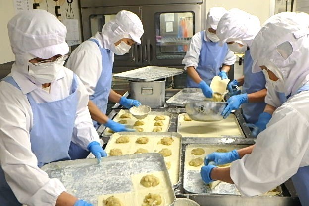 ポテトぎょうざは、給食室の手作りです。