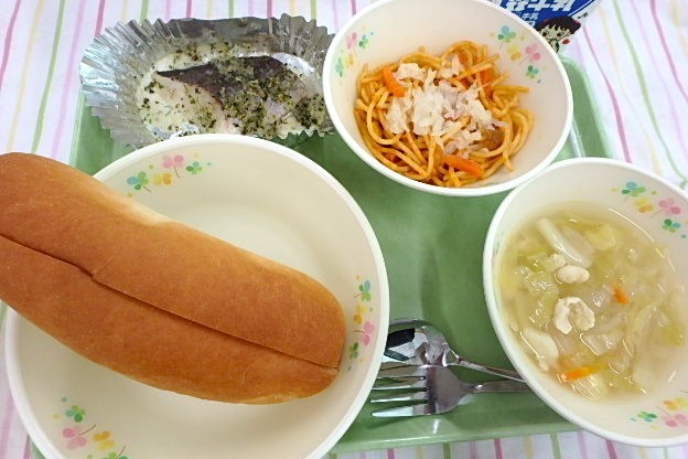 12月15日(月) 公開日 2025/12/15 更新日 2025/12/15 今日の給食 12月15日(月)コッペパン 八王子ナポリタン 白身魚の香草パン粉焼き 白いんげん豆のスープ 牛乳八王子ナポリタン(通称はちナポ)は、八王子のご当地グルメです八王子産の具材を使っていること、きざみ玉ねぎがのっていることが定義です。今日は、八王子産のキャベツが入っています。パンに切れ目が入っているので、好みで挟んで食べてください。