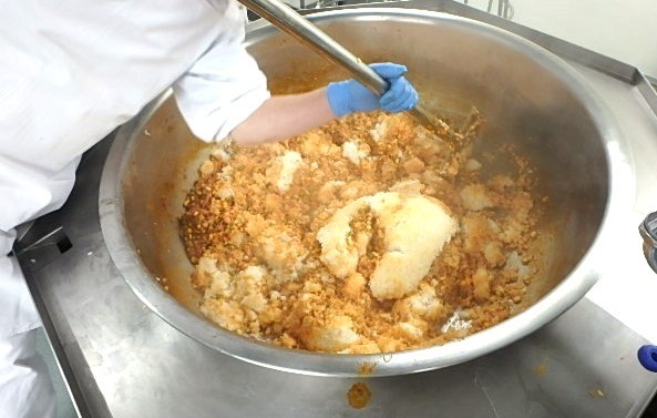 オニオンスープのたまねぎは、あめ色になるように炒めました。