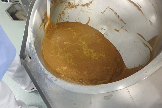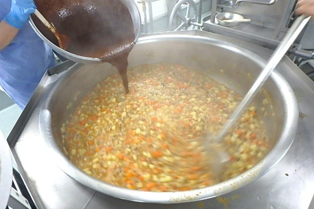 今日のカレールーも、小麦粉を油とバターで炒めてルーを作り、カレー粉を加えて調理員さんが作っています。