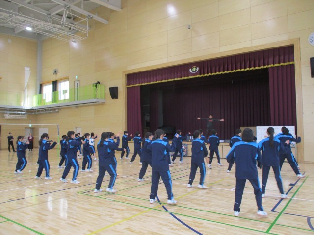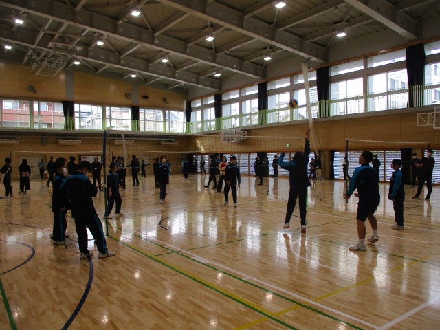 本日5校時に、7年体育バレーボールの研究授業を行いました。素早い整列で、本時のねらいを確認した後、音楽に合わせて準備運動をしっかり行いました。チームミーティングではクロームブックを活用し、チームの課題に応じて練習を2つ選択し、子供たちが主体的にチーム練習に取り組んでいました。ゲームを楽しんだ後の振り返りでは、ゲームのデータをもとに次回に向けて出た課題を伝え合い、確認していました。
