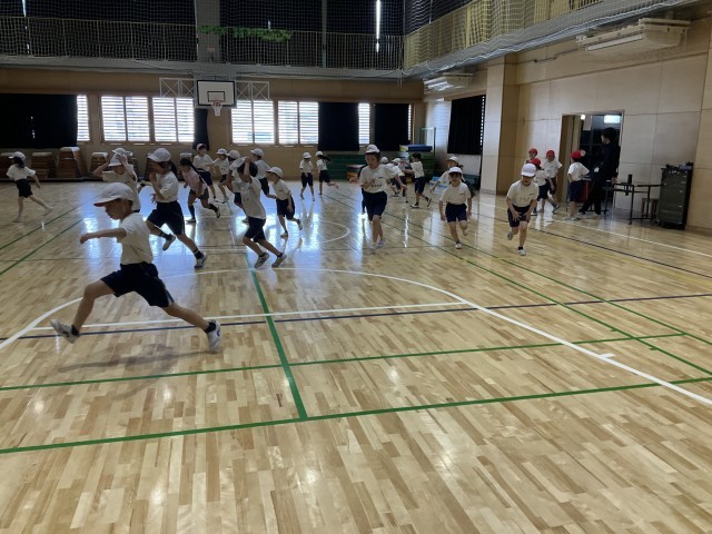 体育では、鬼ごっこをしています。