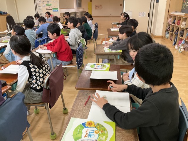 国語。算数、道徳、理科の授業を行っています。