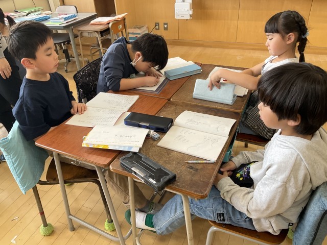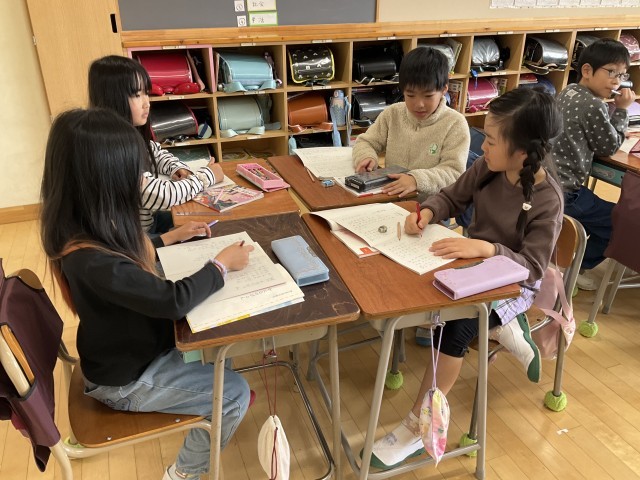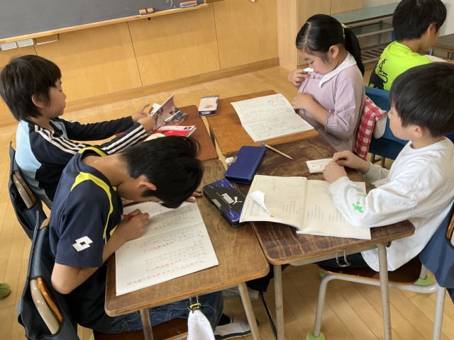 グループで読み方を相談しています。