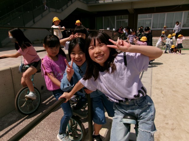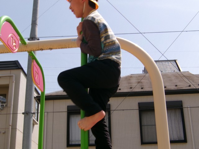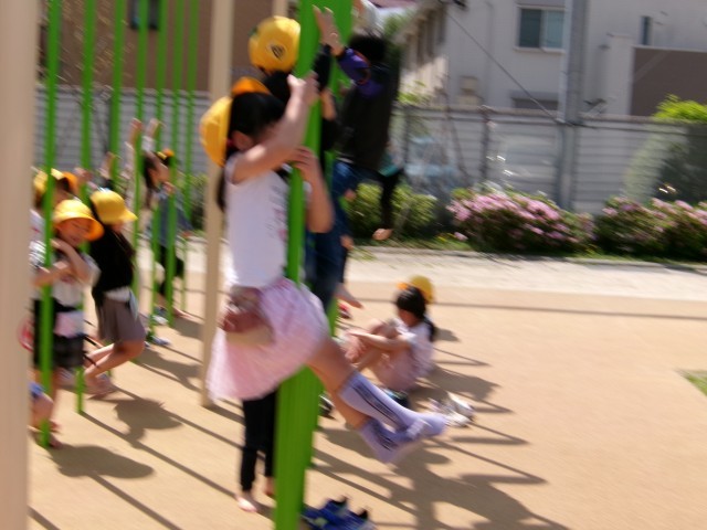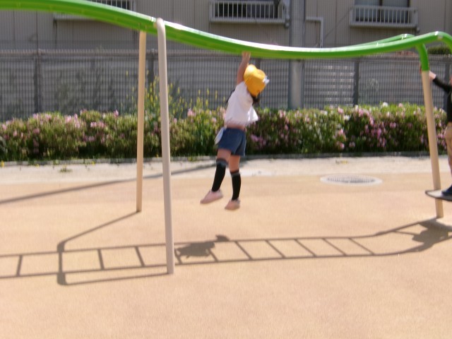 早速遊具で遊んでいます。
