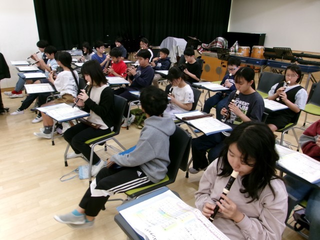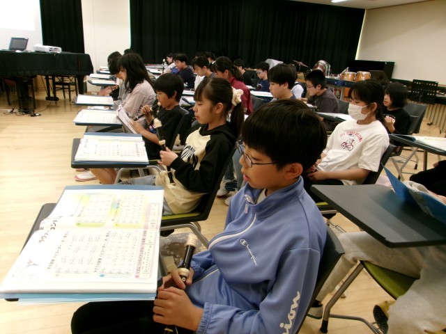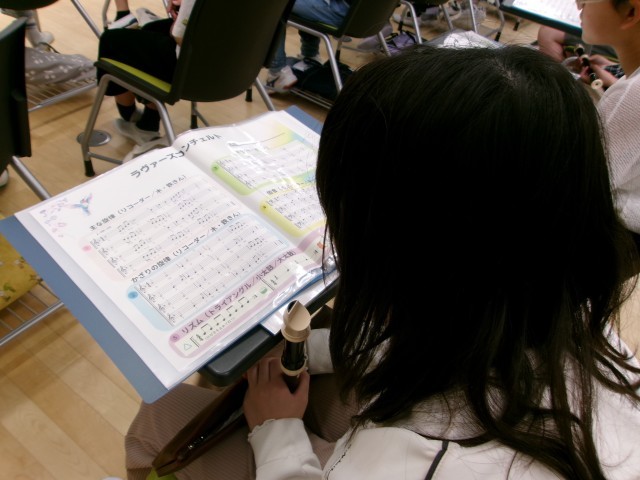 リコーダーの練習をしています。