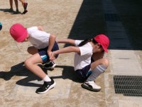 先生が指定した人数でグループを作っています。数の学習ですね。