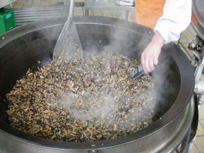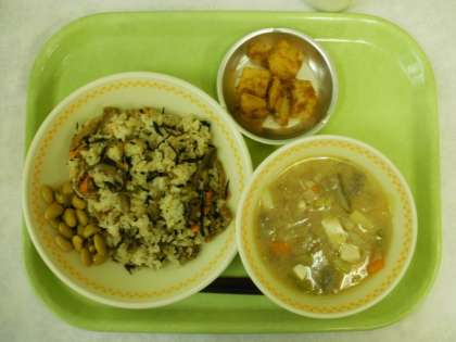ごぼう・ひじき・油揚げ・糸こんにゃく・干ししいたけを調味料で煮て、
