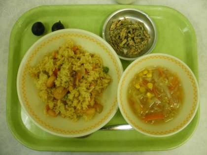二枚目の写真は、出来上がった具と炊き立てのごはんを