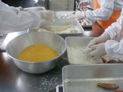 サーモンフライの調理過程