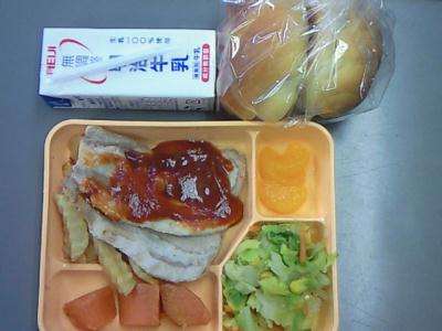 パン 豚肉のきのこソースかけ にんじんグラッセ