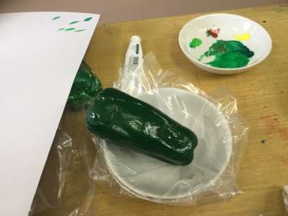モチーフは、ピーマン。中にはお寿司を作った生徒もいます。