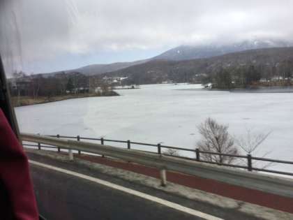 白樺湖を通過しました。 ほぼ全面が凍っています。