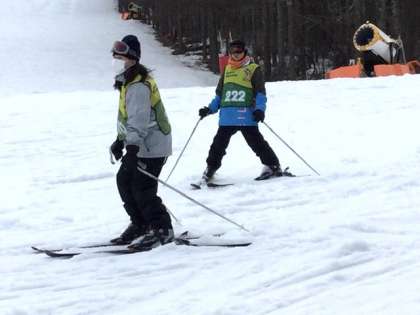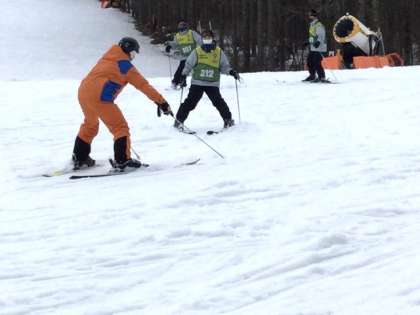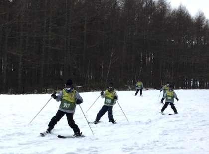 ゲレンデの中腹まで戻り、休憩を取りました。
