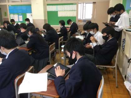 まずは、タブレットで学校の情報を収集しました。