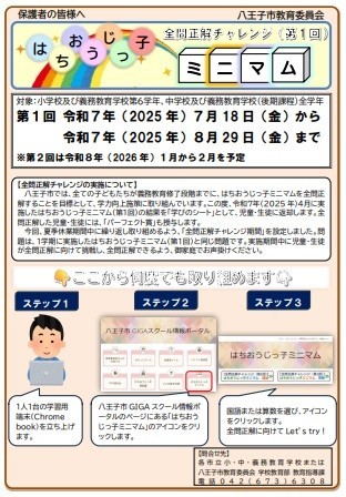 八王子市では、小学6年生から中学3年生までの間に「はちおうじっ子ミニマム」という学力調査に毎年取り組みます。