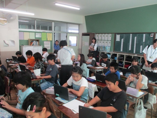 25日の木曜日、四谷中教員が小学校に来て、中学校授業を行いました。中学校授業の雰囲気や様々な教員と学ぶシステムを感じ取ることができたと思います。