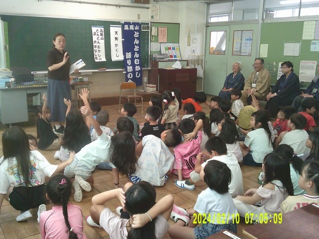 語り部の会の方による演目のストックが20種類あるなか、子どもたちは演目を3つずつ聞くことができました。