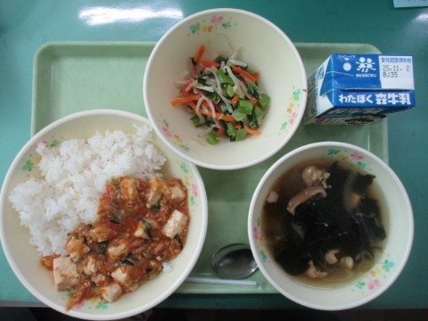 「お豆腐たっぷり麻婆豆腐」や「お豆腐入りわかめスープ」を食べました。