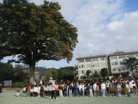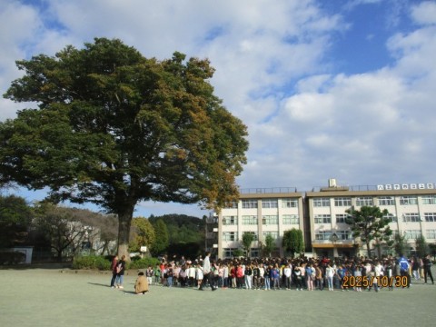 10月30日(木)、大ケヤキの近くに全校児童が集まりました。