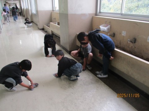 書写で毛筆を行ったのですが、水道周りに水が垂れてしまったそうです。