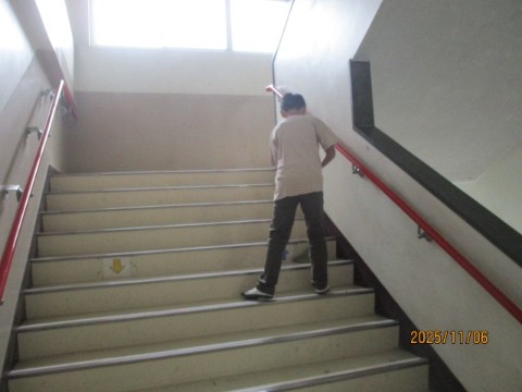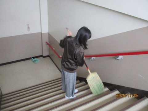 11月6日(木)環境委員会の児童は、登校時刻よりも早めに登校し、階段掃除をしています。