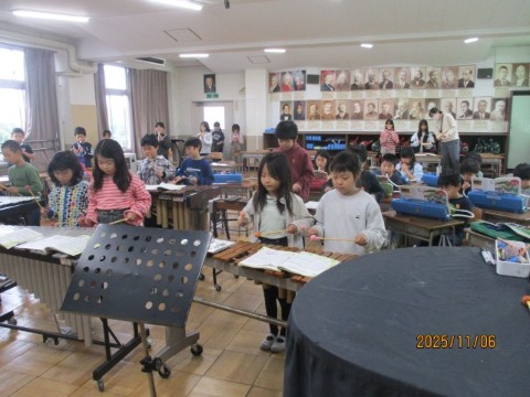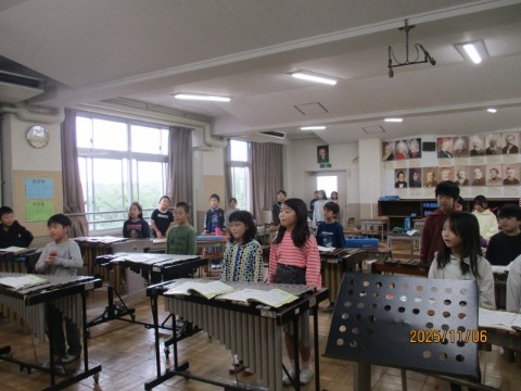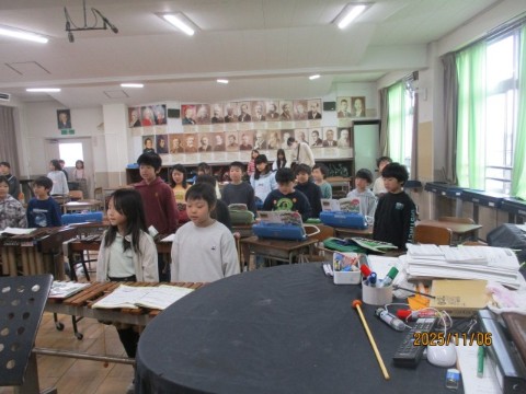 11月6日(木)、3年生の児童は、「ゆかいな木きん」の歌と合奏を担任と副校長の前で披露しました。