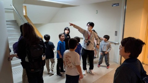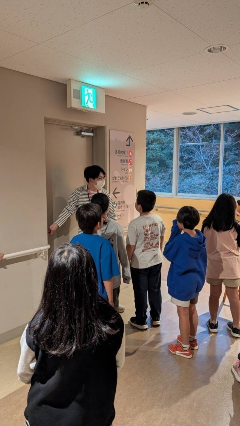 開校式を行い、館内の避難経路を確認して、入室しました。