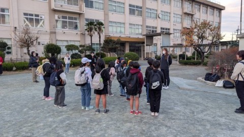 予定よりも30分遅れで上壱分方小学校に戻ってきました。