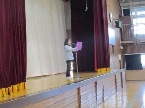 2年生の代表児童が3学期がんばりたいことを発表しました。