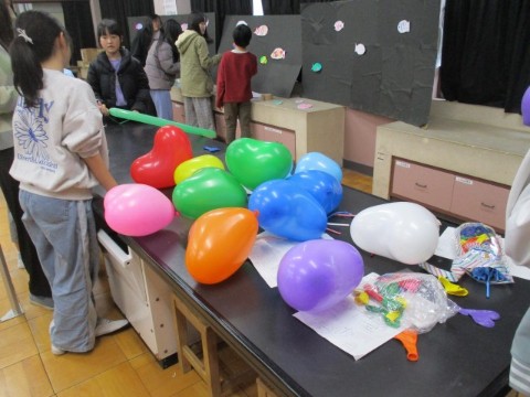 6年生がすすんで行動したおかげで無事に立体作品を飾る会場が用意できました。