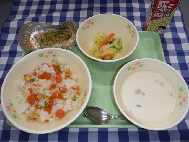3月12日(木)の給食 公開日 2026/03/12 更新日 2026/03/12 今日の給食 ☆3月12日(木)の給食☆・コーンピラフ・白身魚のハーブ焼き・コールスローサラダ・じゃがいものポタージュ・りんごジュース いいね(0)