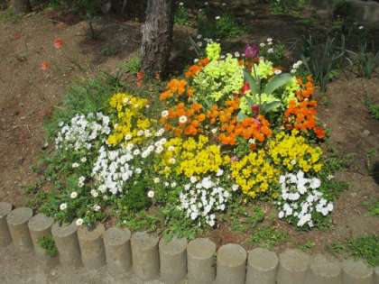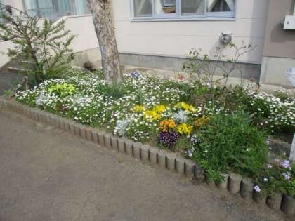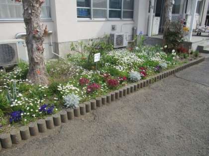園芸ボランティアの方々による花壇には、きれいな花が咲いています。地域の方がありがとうございます。