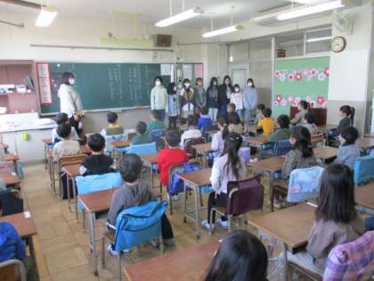 6年生はみんなが登校する前から1年生のお世話をするために準備をしています。1年生の教室では6年生が1年生の様々なお手伝いをしてくれています。今日は、1年生から6年生に向けてお礼の言葉がありました。前に立っている6年生、ちょっぴりうれしい、はにかんだ表情がとてもよかったです。何かをしてもらったら「ありがとう」の一言を添えられると、大人もましてや子供はとてもうれしくなりますし、やりがいを感じます。率先して「ありがとう」の言葉を添えていきましょう。