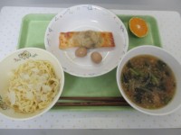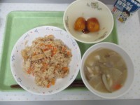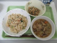 〈メニュー〉・チャーハン・白菜と肉団子のスープ・手作り魚ナッツ・牛乳〈八王子...