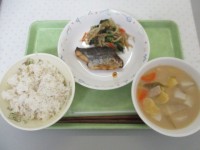 〈メニュー〉・麦ごはん・さわらの幽庵焼き・かぼちゃのすいとん・煮びたし・牛乳...