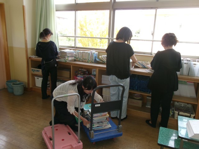 汚れている本をきれいに拭いたり、壊れている本を修理したりしてくださっています。