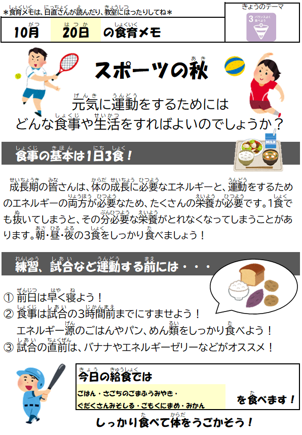 10月20日(月)の給食