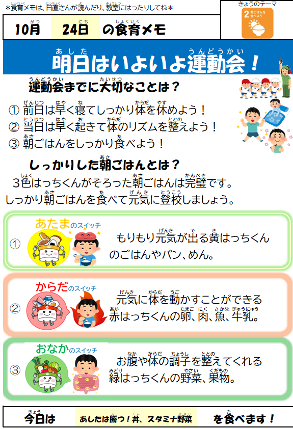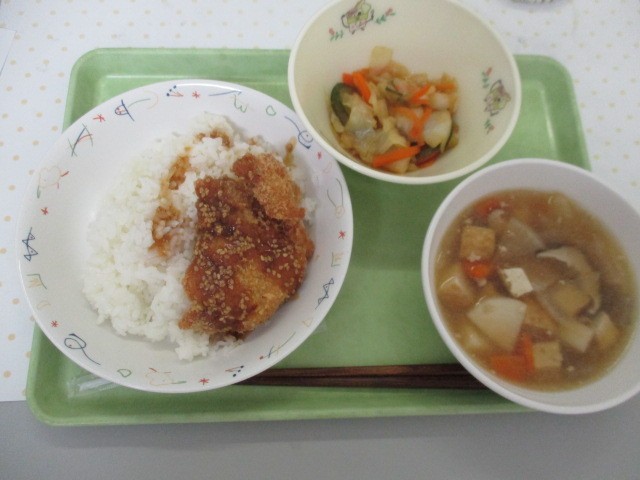 「今日はカツだ!」と献立を見て楽しみにしてくれていた児童もいて嬉しかったです。