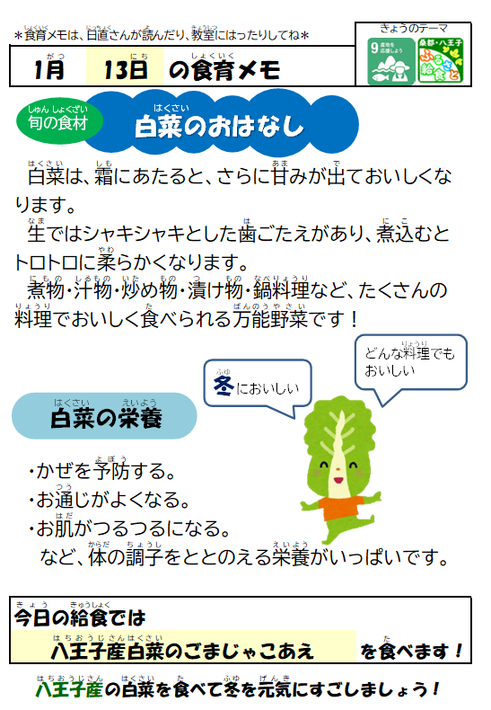 1月13日(火)の給食