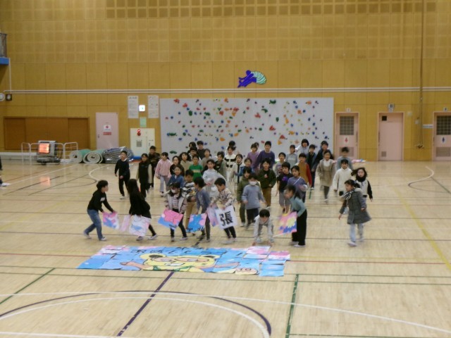 2年生は、君田博士見習いの登場や、6年生が運動会で行った集団行動の再現をしました。