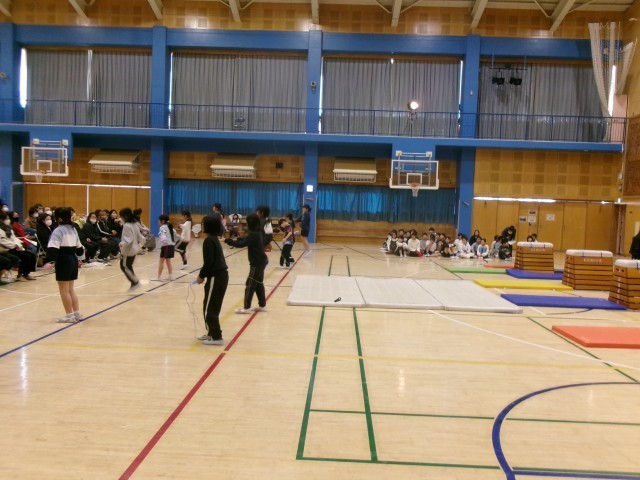 『縄跳びグループ』音楽に合わせて得意な跳び方で2分間程度跳ぶ
