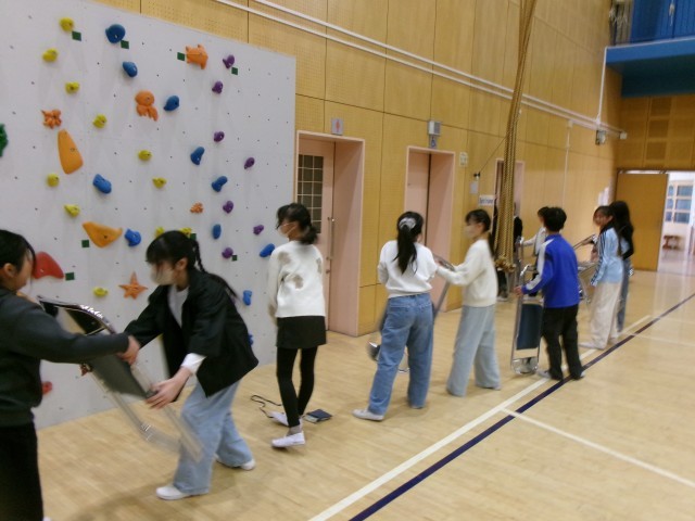 卒業式の前日準備として、5年生が会場準備を行いました。